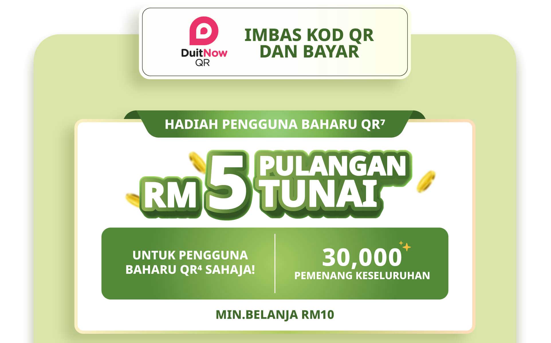7. Hadiah Pengguna Baharu QR dan Hadiah Duit Raya DuitNow dianugerahkan berdasarkan siapa cepat dia dapat. Hadiah QR 7 Hari Berturut-turut dianugerahkan secara rawak.