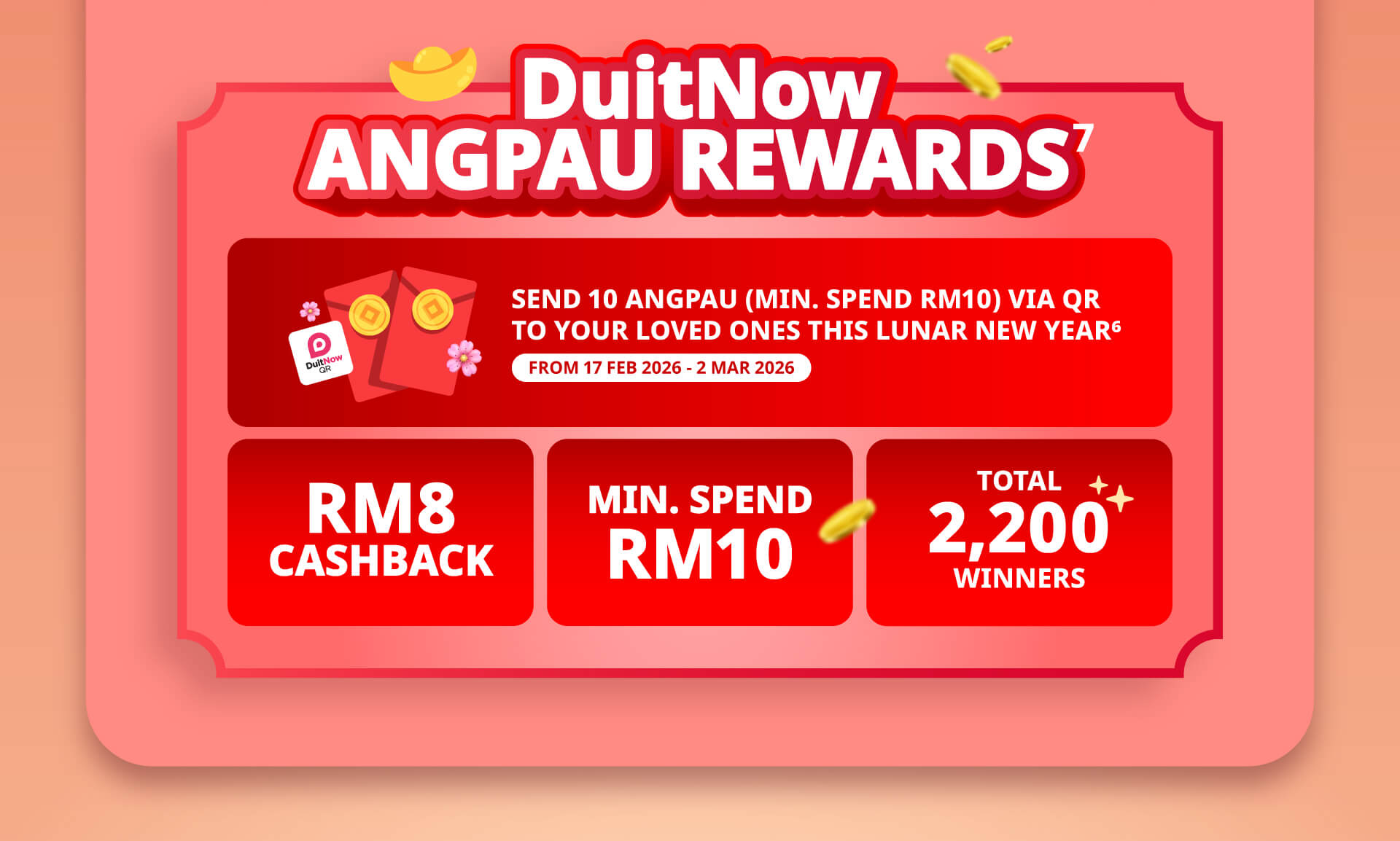 6. 6. To qualify for the DuitNow Angpau Reward, customers must perform ten (10) DuitNow QR Peer-to-peer transactions per week over the course of first two weeks of Chinese New Year within the campaign period.
