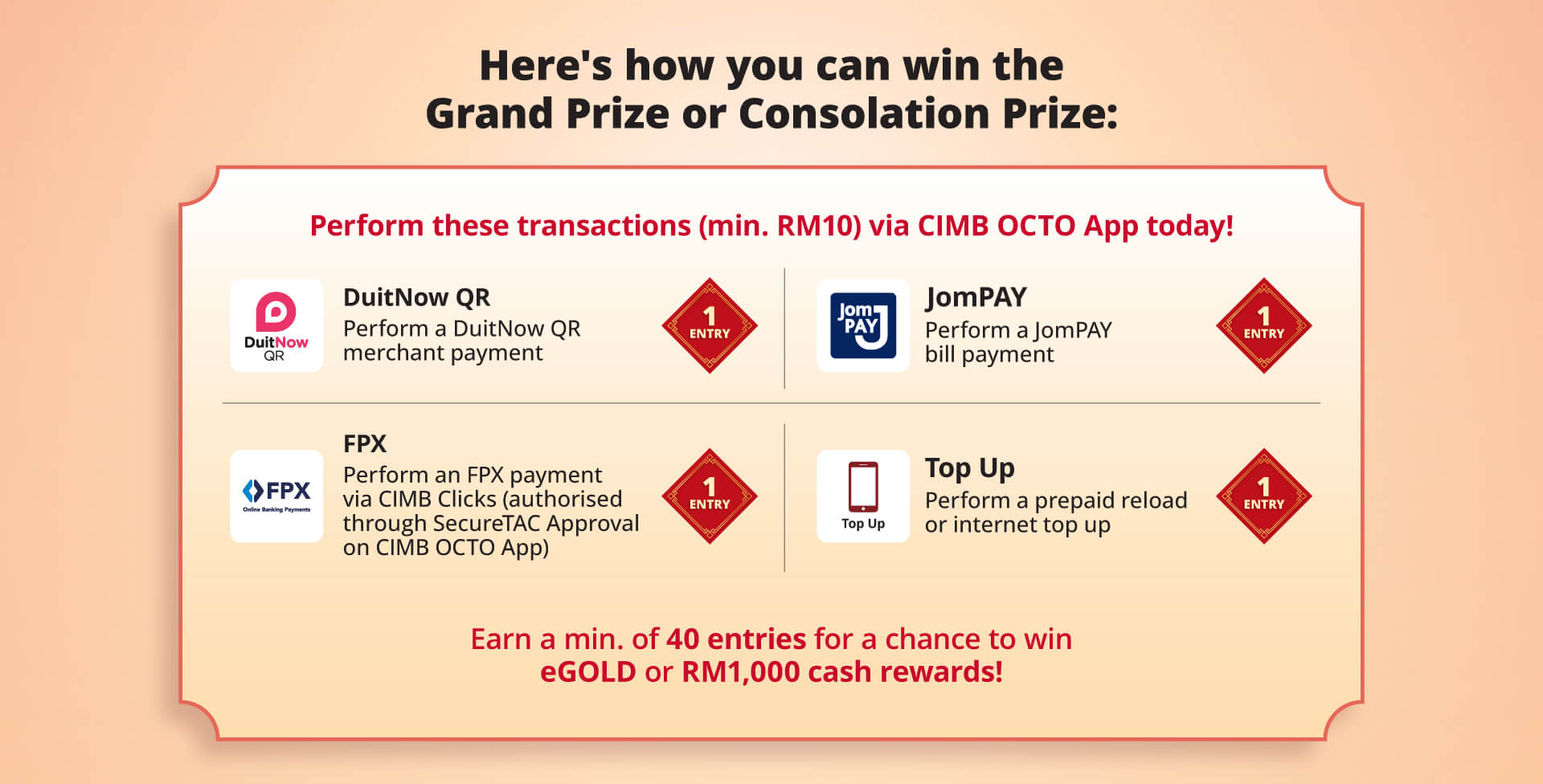 Transact with CIMB OCTO App to win Gold, Cash or Cashback!