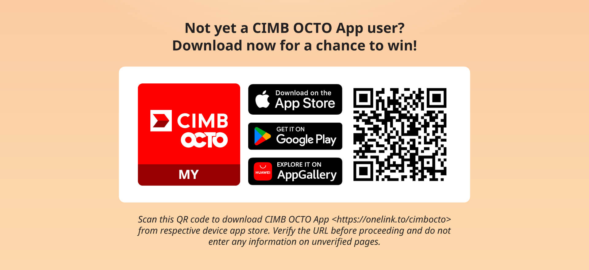 4. 4. The QR New User Reward is exclusively available to customers who have not performed any DuitNow QR Pay-to-merchant transactions via the CIMB OCTO App in the past six (6) months prior the campaign launch date.